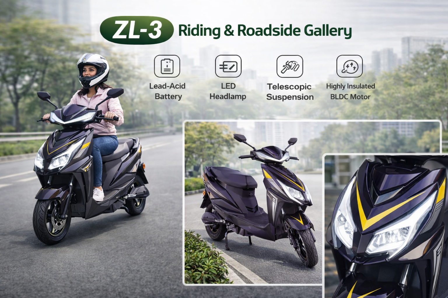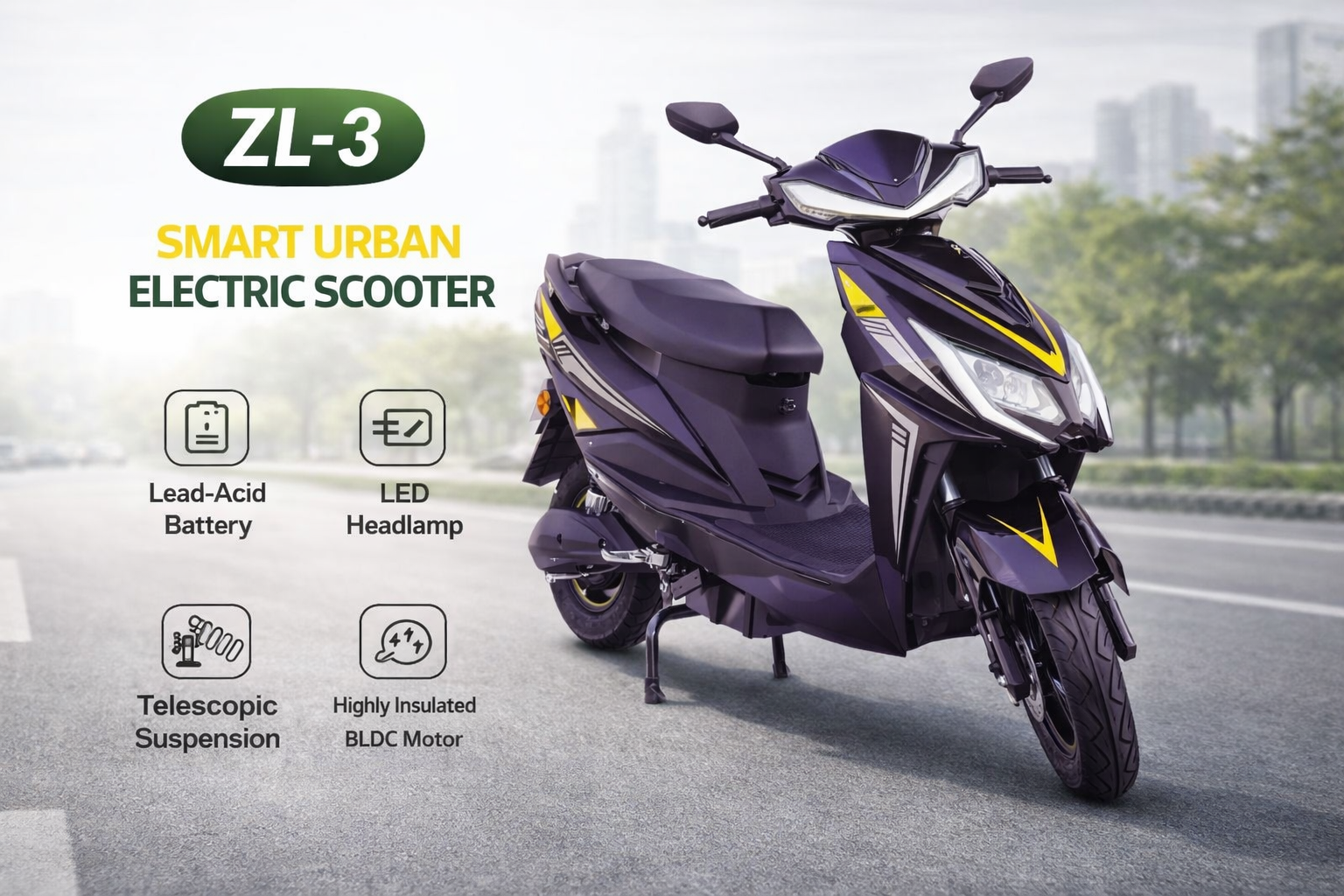 GREENFLY SL-2 ek powerful aur stylish electric scooter hai jo daily city ride ke liye perfect hai. Isme highly insulated BLDC motor, LED headlamp, USB charger aur anti-theft alarm jaise smart features diye gaye hain. Low maintenance, smooth ride aur eco-friendly performance ke saath SL-2 aapke safar ko banaata hai safe aur economical.